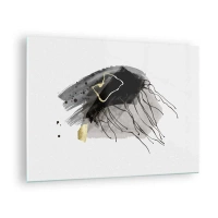 Obraz na skle - Abstraktní kompozice černé a zlaté na bílém pozadí - 70x50cm - V černé a zlaté - Moderní nástěnná dekorace do obývacího pokoje a ložnice ARTTOR