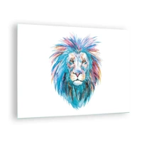 Obraz na skle - Barevný portrét lva v uměleckém stylu - 70x50cm - Elektrizující aura - Moderní nástěnná dekorace do obývacího pokoje a ložnice ARTTOR