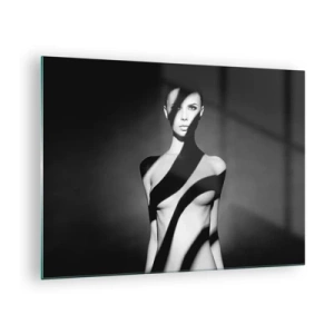 Obraz na skle - Černobílý portrét ženy s výraznými stíny - 70x50cm - V záři i ve stínu - Moderní nástěnná dekorace do obývacího pokoje a ložnice ARTTOR
