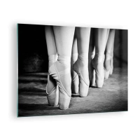 Obraz na skle - Baleríny na špičkách v černobílém prostředí - 70x50cm - Společně, lehce - Moderní nástěnná dekorace do obývacího pokoje a ložnice ARTTOR