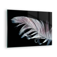 Obraz na skle - Jemné pírko na černém pozadí v uměleckém pojetí - 70x50cm - Přemýšlejte o dotyku - Moderní nástěnná dekorace do obývacího pokoje a ložnice ARTTOR