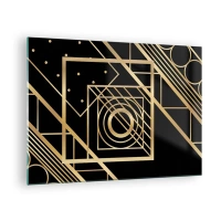 Obraz na skle - Zlaté geometrické vzory na černém pozadí - 70x50cm - Zlatá geometrie - Moderní nástěnná dekorace do obývacího pokoje a ložnice ARTTOR