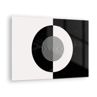 Obraz na skle - Geometrický vzor černé a bílé symetrie - 70x50cm - Harmonie v černé a bílé - Moderní nástěnná dekorace do obývacího pokoje a ložnice ARTTOR