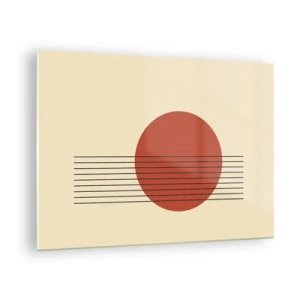 Obraz na skle - Minimalistická grafika s červeným kruhem a čarami - 70x50cm - Pořád dokola - Moderní nástěnná dekorace do obývacího pokoje a ložnice ARTTOR