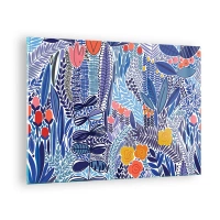 Obraz na skle - Barevná rostlinná kompozice v tropickém stylu - 70x50cm - Havajská zahrada - Moderní nástěnná dekorace do obývacího pokoje a ložnice ARTTOR