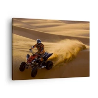 Obraz na plátně - Motocyklista na čtyřkolce uhánějící přes písečné duny pouště - 70x50cm - Na vlnách písku - Moderní nástěnná dekorace do obývacího pokoje a ložnice ARTTOR
