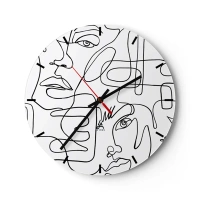Nástěnné hodiny - Minimalistické kresby obličejů v liniových kresbách na bílém pozadí - 30x30cm - Ve spletených emocích - Moderní nástěnná dekorace do obývacího pokoje, kuchyně a ložnice ARTTOR