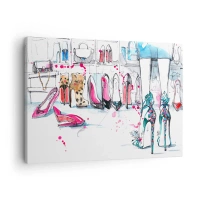 Obraz na plátně - Umělecká grafika s vysokými podpatky a doplňky - 70x50cm - Sezame, otevři se - Moderní nástěnná dekorace do obývacího pokoje a ložnice ARTTOR