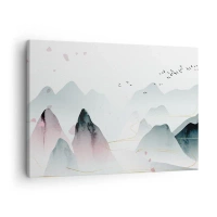 Obraz na plátně - Abstraktní hory v pastelových odstínech - 70x50cm - Přes vrcholy - Moderní nástěnná dekorace do obývacího pokoje a ložnice ARTTOR