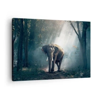 Obraz na plátně - Slon ve světle lesa - 70x50cm - Klidná procházka - Moderní nástěnná dekorace do obývacího pokoje a ložnice ARTTOR