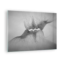 Obraz na skle - Abstraktní polibek v černé a bílé - 70x50cm - Polibek větru - Moderní nástěnná dekorace do obývacího pokoje a ložnice ARTTOR