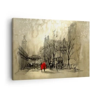 Obraz na plátně - Červená postava v nostalgickém městském prostředí - 70x50cm - Rande v londýnské mlze - Moderní nástěnná dekorace do obývacího pokoje a ložnice ARTTOR