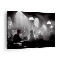 Obraz na plátně - Černobílá jazzová noční scéna - 70x50cm - V jazzové atmosféře - Moderní nástěnná dekorace do obývacího pokoje a ložnice ARTTOR