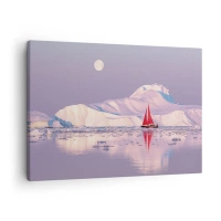 Obraz na plátně - Červená plachta na pozadí ledových hor a úplňku. - 70x50cm - Žár plachty, chlad ledu - Moderní nástěnná dekorace do obývacího pokoje a ložnice ARTTOR