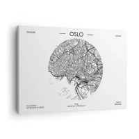 Obraz na plátně - Mapa Osla v minimalistickém černobílém stylu. - 70x50cm - Anatomie Osla - Moderní nástěnná dekorace do obývacího pokoje a ložnice ARTTOR