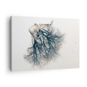 Obraz na plátně - Kreativní silueta ženy a stromů - 70x50cm - Okouzlená šepotem stromu - Moderní nástěnná dekorace do obývacího pokoje a ložnice ARTTOR