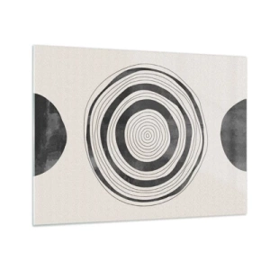 Obraz na skle - Černobílý abstraktní vzor se soustřednými kruhy - 70x50cm - Důležité je to, co je uprostřed - Moderní nástěnná dekorace do obývacího pokoje a ložnice ARTTOR