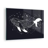 Obraz na skle - Grafická bílá silueta velryby plovoucí ve vesmíru - 70x50cm - V oceánu vesmíru - Moderní nástěnná dekorace do obývacího pokoje a ložnice ARTTOR