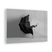 Obraz na skle - Tanečnice v černých šatech se dynamicky vznáší ve vzduchu - 70x50cm - Okřídlený hudbou - Moderní nástěnná dekorace do obývacího pokoje a ložnice ARTTOR