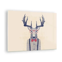 Obraz na skle - Ilustrace jelena s brýlemi a motýlkem - 70x50cm - Zábavná extravagance - Moderní nástěnná dekorace do obývacího pokoje a ložnice ARTTOR
