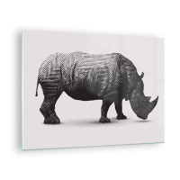 Obraz na skle - Černobílý nosorožec s geometrickými vzory - 70x50cm - Geometrická krása přírody - Moderní nástěnná dekorace do obývacího pokoje a ložnice ARTTOR