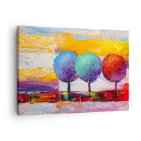 Obraz na plátně - Tři barevné stromy na abstraktním pozadí - 70x50cm - Do třetice všeho dobrého - Moderní nástěnná dekorace do obývacího pokoje a ložnice ARTTOR