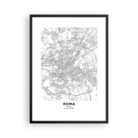 Plakát v černém rámu - Černobílá mapa Říma s detailními ulicemi a památkami - 50x70cm - Římský kruh - Moderní nástěnná dekorace do obývacího pokoje a ložnice ARTTOR