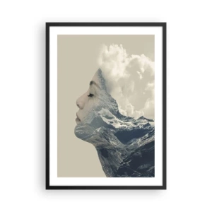 Plakát v černém rámu - Ženský profil splývající s horskou krajinou - 50x70cm - Krása živlů - Moderní nástěnná dekorace do obývacího pokoje a ložnice ARTTOR