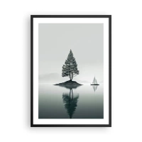 Plakát v černém rámu - Osamělý strom na ostrově s odrazem ve vodě - 50x70cm - Snění - Moderní nástěnná dekorace do obývacího pokoje a ložnice ARTTOR