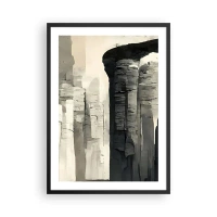 Plakát v černém rámu - Monumentální skalní útvary v odstínech šedé - 50x70cm - Majestátnost starožitnosti - Moderní nástěnná dekorace do obývacího pokoje a ložnice ARTTOR