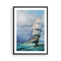 Plakát v černém rámu - Plachetnice na rozbouřeném moři v akvarelu - 50x70cm - Šťastnou cestu - Moderní nástěnná dekorace do obývacího pokoje a ložnice ARTTOR