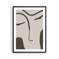 Plakát v černém rámu - Minimalistický portrét obličeje - 50x70cm - Jako z Modiglianiho obrazu - Moderní nástěnná dekorace do obývacího pokoje a ložnice ARTTOR