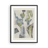 Plakát v černém rámu - Abstraktní postavy v odstínech zelené a modré - 50x70cm - Kompozice za sklem - Moderní nástěnná dekorace do obývacího pokoje a ložnice ARTTOR