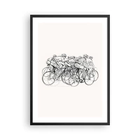 Plakát v černém rámu - Skica cyklistů závodících na minimalistickém pozadí - 50x70cm - Společně v týmu - Moderní nástěnná dekorace do obývacího pokoje a ložnice ARTTOR