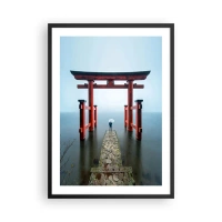 Plakát v černém rámu - Červené torii na pozadí klidné vody a oblohy - 50x70cm - Japonské zamyšlení - Moderní nástěnná dekorace do obývacího pokoje a ložnice ARTTOR
