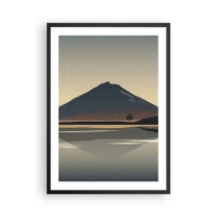 Plakát v černém rámu - Minimalistická horská krajina s odrazem v jezeře - 50x70cm - Zrcadlový odraz - Moderní nástěnná dekorace do obývacího pokoje a ložnice ARTTOR