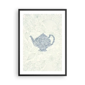 Plakát v černém rámu - Dekorativní ilustrace konvice na čaj s jemným vzorem na světlém pozadí. - 50x70cm - Čajové kouzlo - Moderní nástěnná dekorace do obývacího pokoje a ložnice ARTTOR