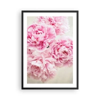 Plakát v černém rámu - Kytice růžových pivoněk na světlém pozadí - 50x70cm - V růžovém přepychu - Moderní nástěnná dekorace do obývacího pokoje a ložnice ARTTOR