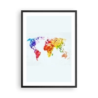 Plakát v černém rámu - Barevná mapa světa s akvarelem - 50x70cm - Všechny barvy světa - Moderní nástěnná dekorace do obývacího pokoje a ložnice ARTTOR