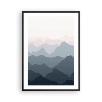 Plakát v černém rámu - Vrstvené pohoří v odstínech modré a šedé - 50x70cm - Vlny hor - Moderní nástěnná dekorace do obývacího pokoje a ložnice ARTTOR
