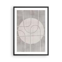 Plakát v černém rámu - Geometrické čáry a kruh v odstínech šedé - 50x70cm - Kruhově a přímo - Moderní nástěnná dekorace do obývacího pokoje a ložnice ARTTOR