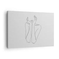 Obraz na plátně - Minimalistická kresba obličeje a rukou - 70x50cm - O čem sní dívky - Moderní nástěnná dekorace do obývacího pokoje a ložnice ARTTOR