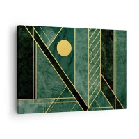 Obraz na plátně - Zelený a zlatý geometrický design s elegantním vzorem - 70x50cm - Dynamika zlata a lazuritu - Moderní nástěnná dekorace do obývacího pokoje a ložnice ARTTOR