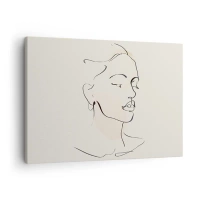 Obraz na plátně - Minimalistický obrys ženské siluety - 70x50cm - Ty jsi záhada… - Moderní nástěnná dekorace do obývacího pokoje a ložnice ARTTOR