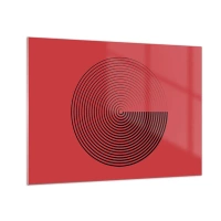 Obraz na skle - Černé soustředné kruhy na červeném pozadí - 70x50cm - Kruhový pohyb - Moderní nástěnná dekorace do obývacího pokoje a ložnice ARTTOR