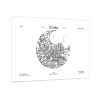 Obraz na skle - Grafická mapa Dauhá v minimalistickém černobílém stylu. - 70x50cm - Anatomie Dauhá - Moderní nástěnná dekorace do obývacího pokoje a ložnice ARTTOR