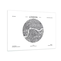 Obraz na skle - Podrobná mapa Londýna v grafickém černobílém stylu. - 70x50cm - Anatomie Londýna - Moderní nástěnná dekorace do obývacího pokoje a ložnice ARTTOR