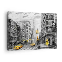 Obraz na plátně - Newyorská ulice se žlutými akcenty - 70x50cm - Newyorský příběh - Moderní nástěnná dekorace do obývacího pokoje a ložnice ARTTOR
