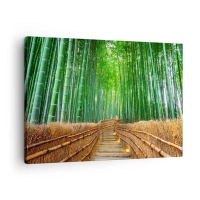 Obraz na plátně - Cesta v hustém bambusovém lese - 70x50cm - Esence asijské přírody - Moderní nástěnná dekorace do obývacího pokoje a ložnice ARTTOR
