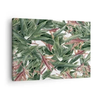 Obraz na plátně - Dekorativní motiv listu v odstínech zelené a vínové na světlém pozadí - 70x50cm - Smaragdově-liliové houští - Moderní nástěnná dekorace do obývacího pokoje a ložnice ARTTOR